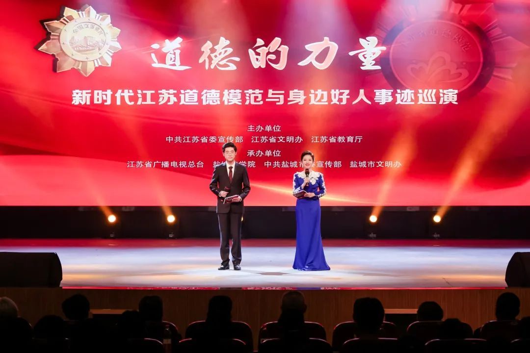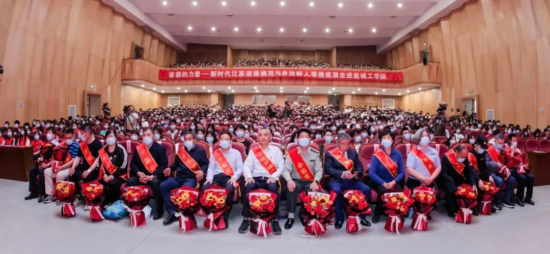 5月17日,由中共江苏省委宣传部、江苏省文明办、江苏省教育厅主办的“道德的力量”——新时代江苏道德模范与身边好人事迹巡演,走进江苏省文明校园盐城工学院。巡演由江苏省广播电视总台、盐城工学院、中共盐城市委宣传部、盐城市文明办共同承办。