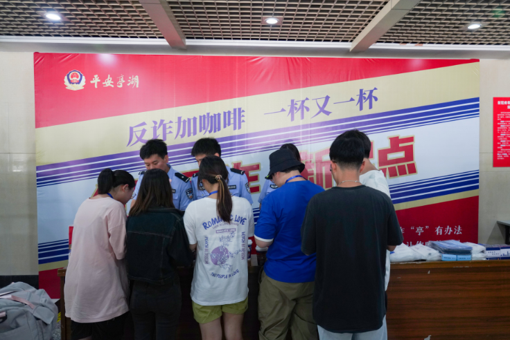 反诈宣传走“实”更走“深”。铺位周边,民警化身“反诈宣讲员”,耐心指导着前来打卡的新生,如何下载安装“国家反诈中心”APP,并积极普及常见的校园诈骗类型和手段,现场解答学生及家长咨询。