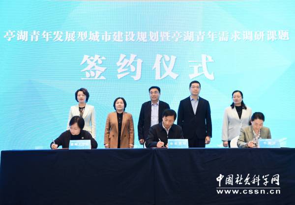 会议期间,盐城市社科联、盐城工学院江淮人文研究院、盐城市亭湖区签订《亭湖青年发展型城市建设规划暨亭湖青年需求调研》合作协议。