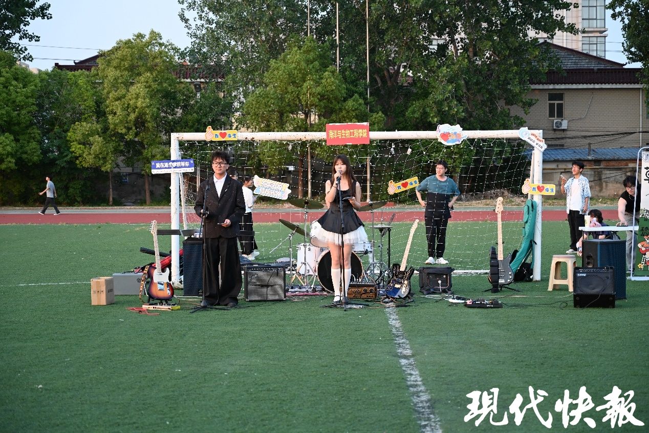 5月29日,盐城工学院海洋与生物工程学院“音浪漫草,时光漫游”草坪音乐节暨毕业季跳蚤市场活动在该校足球场温情上演,数千名师生共赴这场夏夜青春之约。