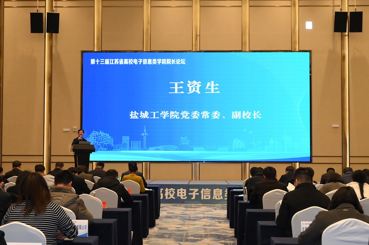校党委常委、副校长王资生致欢迎辞,代表学校对各位嘉宾的到来表示热烈欢迎,并向长期关心支持学校事业发展的主管部门、兄弟院校的领导和同仁表示感谢。他指出,盐城正在全力打造“全省实数融合发展先行区”“长三角‘人工智能+’创新应用试验区”,这赋予了驻盐高校科技创新和人才培养新机遇、新使命。他希望以本次论坛为纽带,各高校电子信息类学院之间能够建立起更加紧密、务实的合作关系,在师资互访、学生交流、课程共建、科研联合攻关、平台资源共享等方面,探索出澳客彩票网_中国足球彩票-app官方下载有效的协同机制,共同谱写江苏电子信息高等教育高质量发展的新篇章。校教务处处长余晓红主持开幕式。