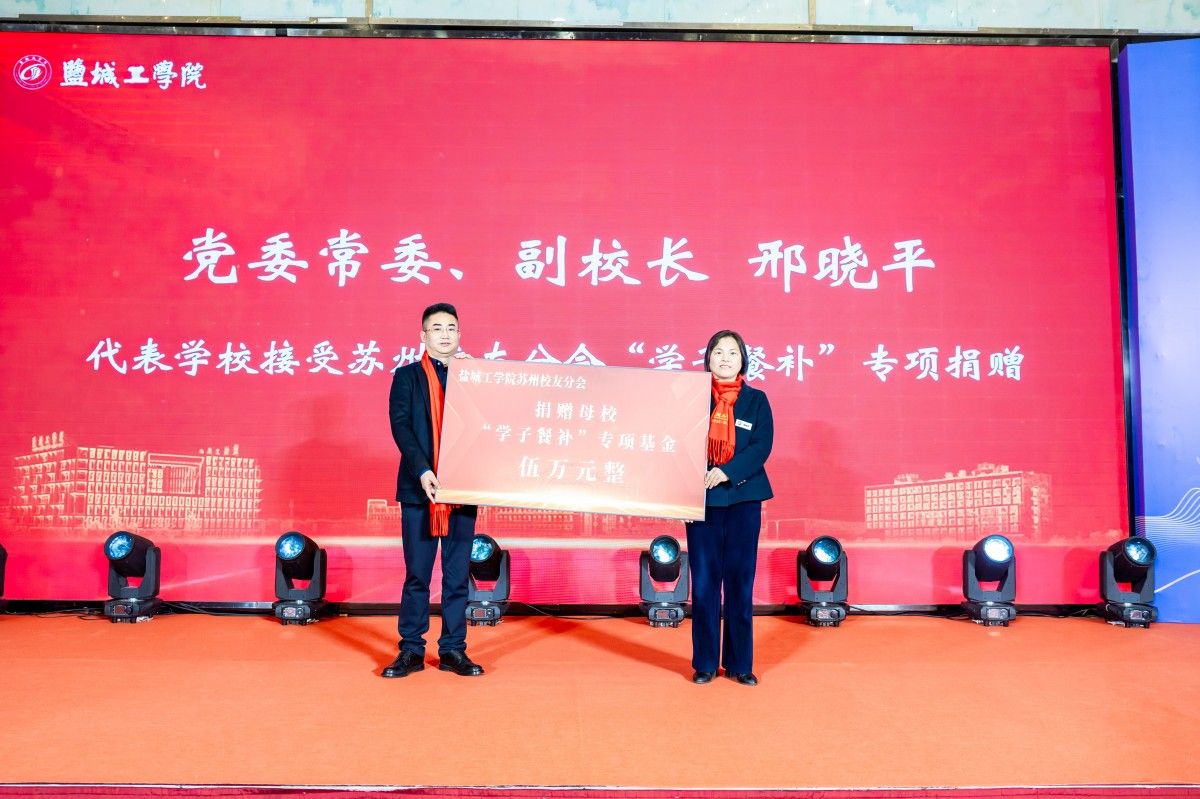 党委常委、副校长邢晓平代表学校接受苏州校友分会“学子餐补”专项捐赠