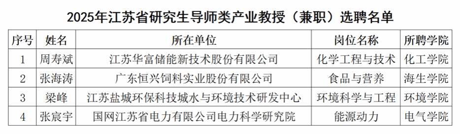 近日,省教育厅、省人才办、省科技厅和省人社厅等四部门联合印发《澳客彩票网_中国足球彩票-app官方下载公布2025年江苏省产业教授(兼职)选聘名单及期满考核结果的通知》(苏教研函[2025]14号),澳客彩票网_中国足球彩票-app官方下载推荐的候选人中有4人成功获批,获批人数位居全省同类高校前列。