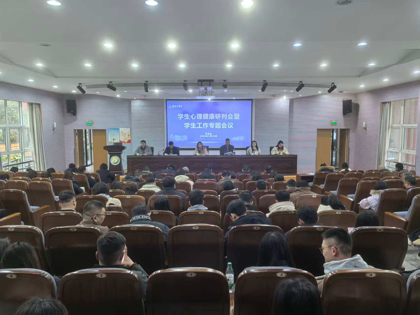 2月26日下午,在希望大道校区土木馆报告厅,学校召开学生心理健康研判会暨学生工作专题会议。党委常委、副校长邢晓平主持会议。学生处、安保处、研究生院、团委、后勤服务集团负责人,二级学院分管学生工作书记,学工办(副)主任、团委(副)书记,学生处、团委科级以上人员,公寓管理中心主任、全体专兼职辅导员等参加。