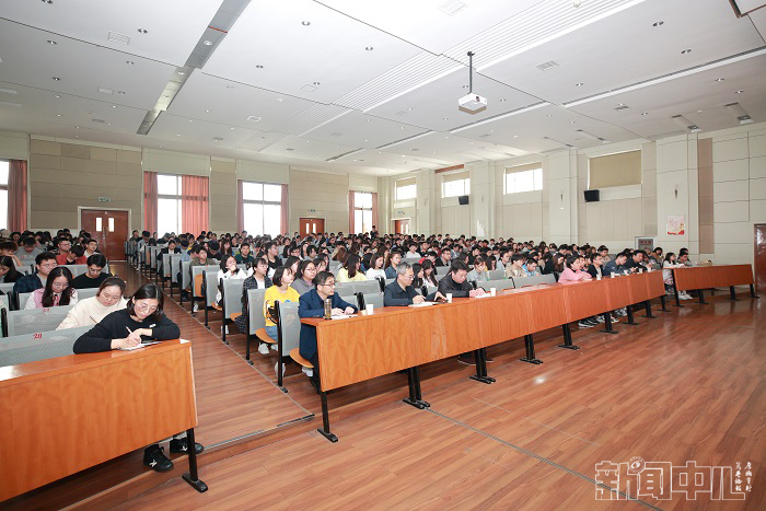4月28日下午,在南校区润美楼报告厅,校纪委书记、党史学习教育校党委宣讲团成员陈春雷为人文学院师生作“学党史,强信念,奋力开启——全面建设社会主义现代化国家新征程”党史学习教育专题宣讲暨形势与政策课。学院党总支副书记何登溢主持,全体专职辅导员,学生党员、发展对象、积极分子等200余人参加。