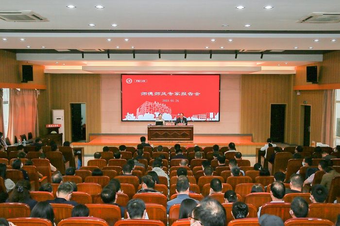 5月24日下午,在希望大道校区机械馆报告厅,江苏科技大学党委常委、副校长任南教授应邀作客澳客彩票网_中国足球彩票-app官方下载师德大讲堂,作题为《高校“立德树人”何以能——新形势下加强高校师德师风建设的思考与行动》的主题报告。校长、党委副书记邵荣主持报告会,党委常委、副校长王资生出席。各二级学院党政负责人、教科研办公室主任、专业系主任、课程组组长、实验中心主任、教师代表及2022年新入职教师等近300人聆听报告。