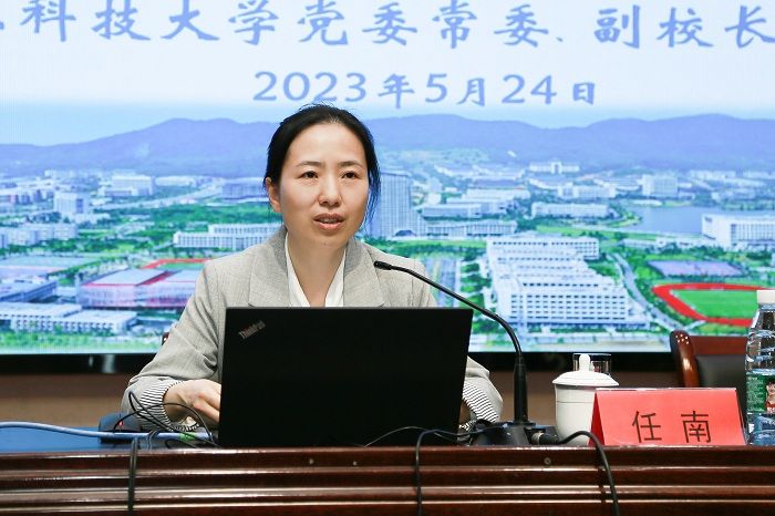 任南从高校师德师风建设的时代背景、高校师德师风建设的现实困境、教师师德素养提升的思路举措、教师师德素养提升的实践探索四个方面对高等学校师德师风建设作了深刻解读。她从正确的政治品德、正确的价值理念、良好的个人品德修养几个层面阐释了师德师风的丰富内涵,结合案例分析了高校师德师风问题的主要表现、师德失范行为较为常见的类型,详细介绍了江苏科技大学宣传、教育、激励、考核、监督、惩处为一体的师德建设工作机制,提出了树立职业理想、学习先进典型、坚守师德底线、锤炼职业素养、践行课程思政的教师师德素养提升路径。她指出,百年大计教育为本,教育大计教师为本,教师大计师德师风为关键,广大教师要努力成为师德水平较高、学科积淀较深厚、教学艺术较好的“学生心目中的好老师”。