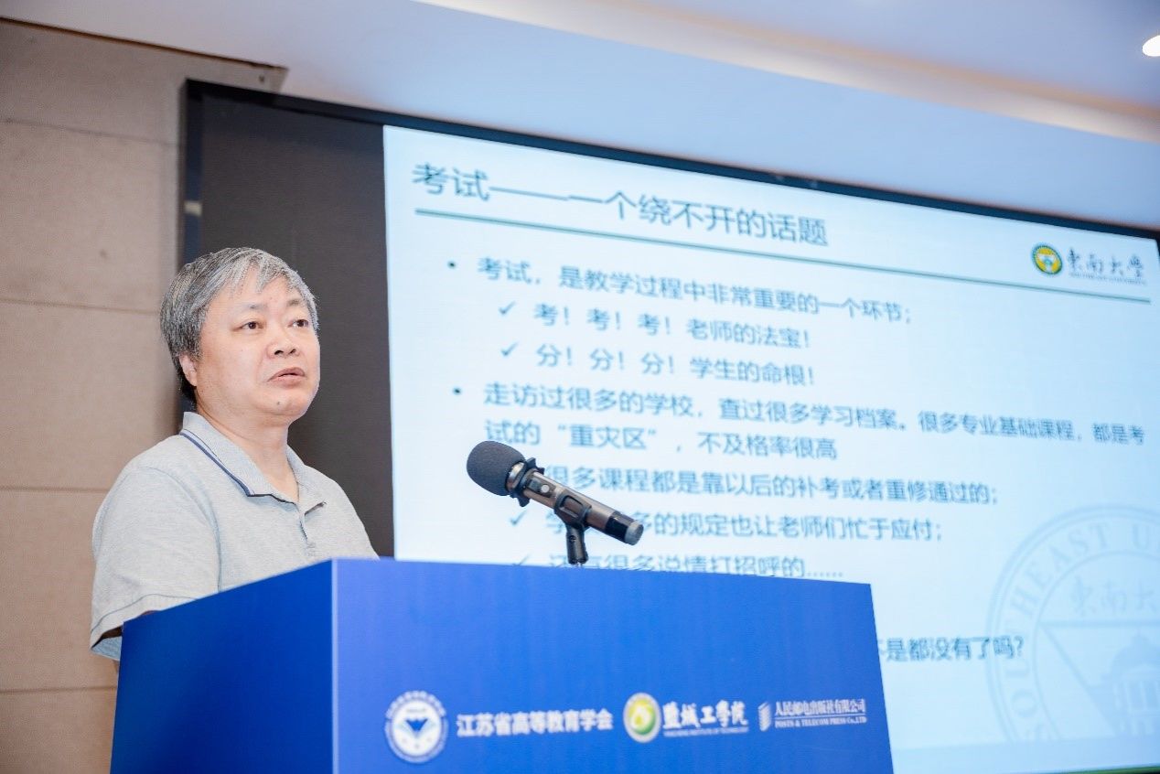 特邀报告环节,东南大学首席教授、国家级教学名师、东南大学电工电子国家级实验教学示范中心主任胡仁杰作了题为“项目化教学的大电类基础课程群的优化重构”的报告;北京航空航天大学教授、北京市教学名师张有光作了题为“基于教学任务开展教学研究”的报告;东南大学教授、教育部工科基础课程教学指导委员会委员孟桥作了题为“澳客彩票网_中国足球彩票-app官方下载考试的那些事”的报告;国家“万人计划”教学名师、原江南大学副校长纪志成教授作了题为“国家教学成果奖培育申报与案例解析”的报告;国家“万人计划”教学名师、教育部电工电子基础课程教学指导委员会委员王成华教授聚焦创新人才培育,介绍了以科学研究为途径,如何强化科研以反哺教学,作了题为“潜心教研,做一名深受学生欢迎的好老师”的报告;人民邮电出版社高级策划编辑、全国大中专教材融合创新金牌编辑王宣作了题为“创新教材建设模式,服务高校人才培养”的报告。