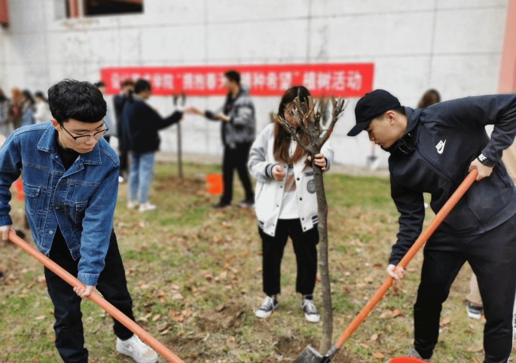 活动中,后勤服务集团对植树场地安排、树苗种类等方面给予了专业指导意见,并提供了铁铲、水桶等植树工具。设计艺术学院师生在后勤服务集团工作人员的指导下展开劳动,大家分工明确,相互配合,有的松土挖坑,有的放苗培土,有的踩土浇水,活动现场气氛热烈。各班级还为本班种植的树苗设计并制作了各具特色的标识牌,同学们纷纷在栽种好的树苗前合影留念。活动结束后,同学们说:“本以为植树是件简单的事,今天亲自动手才发现是件技术活,不仅需要细心和耐心,还有技巧。”“我们希望在大一种下一棵树,陪伴和见证我们四年学习成长,这是一件格外有意义的事。”“一班一棵树,人人一片林,希望这样的活动长久坚持下去,我们共同建设绿色校园。”