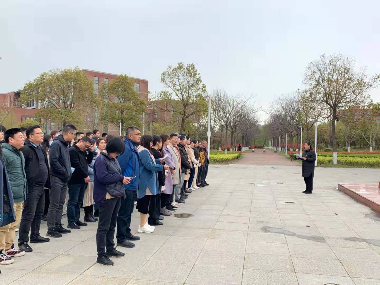 3月31日下午,设计艺术学院党总支在南校区铁军广场开展“深入学习党史、传承红色基因、凝聚奋进力量”主题党日活动,学院党总支书记胡凌霞主持,学院中心组成员、全体教工党员和学生党员等60余人参加活动。