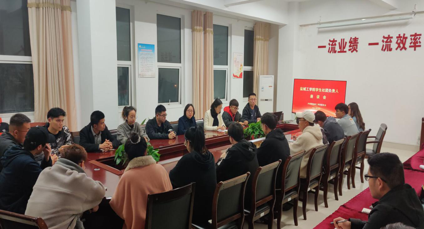为进一步贯彻落实《盐城工学院学生社团建设管理办法》,稳步推进学生社团改革,促进学生社团健康有序发展,4月12日晚,校团委在南校区大学生活动中心召开2021年学生社团负责人座谈会。校团委书记包雅玮出席,团委相关工作人员、学生社团负责人等50余人参加,校团委副书记方璇主持。