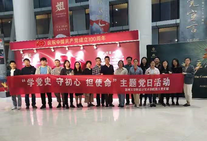 5月23日晚,在盐城市文化艺术中心,设计艺术学院教工党支部开展“学党史、守初心、担使命”党史学习教育主题党日活动,组织观看红色话剧《共产党宣言》,学院全体教职工党员、关工委成员参加活动。