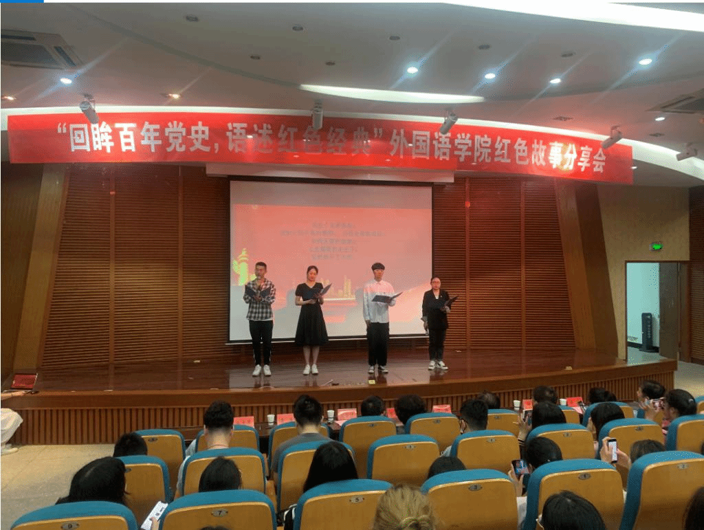 为献礼中国共产党成立一百周年,进一步加深同学们对党史的了解,6月2日晚,外国语学院在南校区润美楼报告厅举办“回眸百年党史,语述红色经典”红色故事分享会,学院师生等300余人参加。