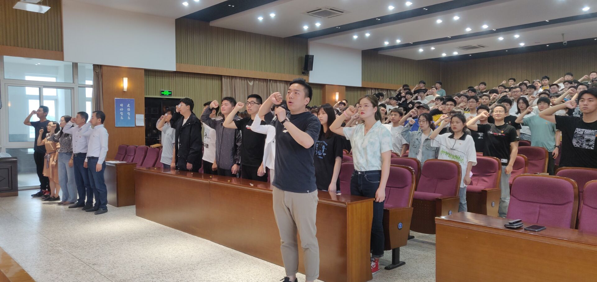 6月2日下午,机械优集学院在希望大道校区机械馆三楼报告厅召开春学期新党员入党宣誓暨全体学生党员教育大会。学院党委书记孙雷出席,党委副书记秦卫兵主持会议,学生支部书记、全体学生党员等200余人参加。