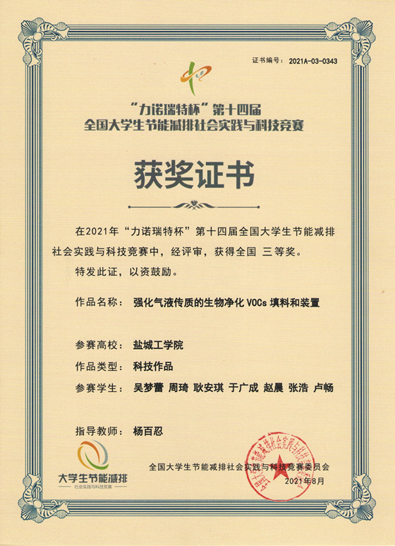 近日,由教育部高等学校能源动力专业教学指导委员会指导、全国大学生节能减排社会实践与科技竞赛委员会主办、山东大学承办的第十四届全国大学生节能减排社会实践与科技竞赛决赛在济南落下帷幕,澳客彩票网_中国足球彩票-app官方下载共斩获三等奖5项,并获优秀组织奖。