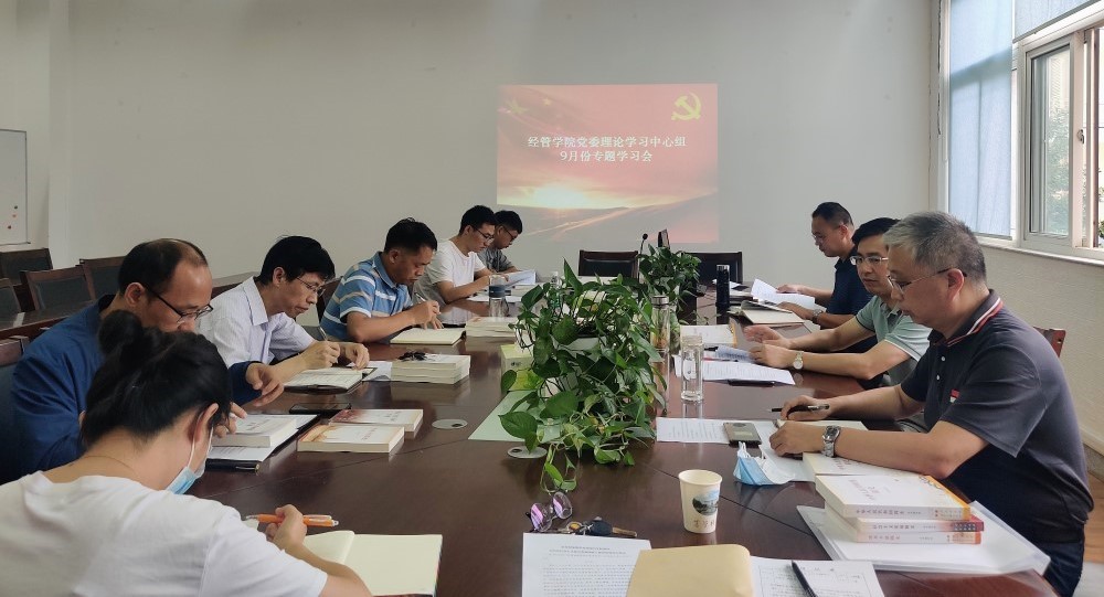 9月29日下午,经济管理学院在南校区仁和楼B202会议室,召开党委理论学习中心组学习会暨党史学习教育专题学习会,学习研讨《中国共产党简史》《中国共产党普通高等学校基层组织工作条例》《中国共产党党徽党旗条例》。学院党委书记卜树春主持,党委委员、班子成员、党支部书记等中心组成员参加学习。