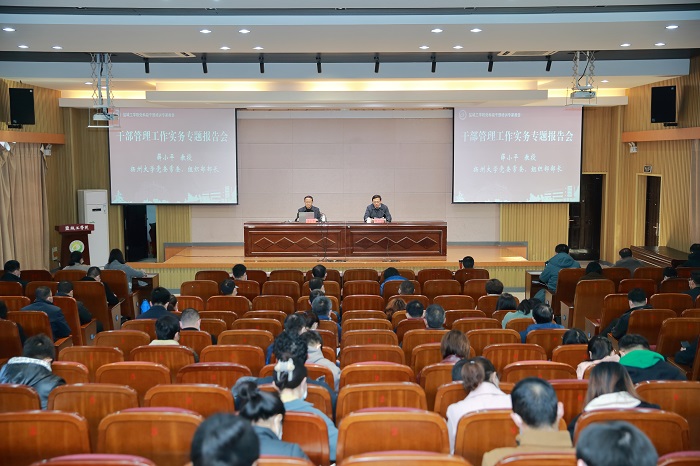 11月26日下午,按照学校2021年秋学期干部培训教学计划安排,在希望大道校区机械馆报告厅,学校邀请扬州大学党委常委、组织部部长薛小平教授来校,作题为《高校管理知识与实务—基于高等教育发展的视角》的专题报告。党委常委、组织部部长倪自银主持,全体新提任处科级干部等120余人参加报告会。
