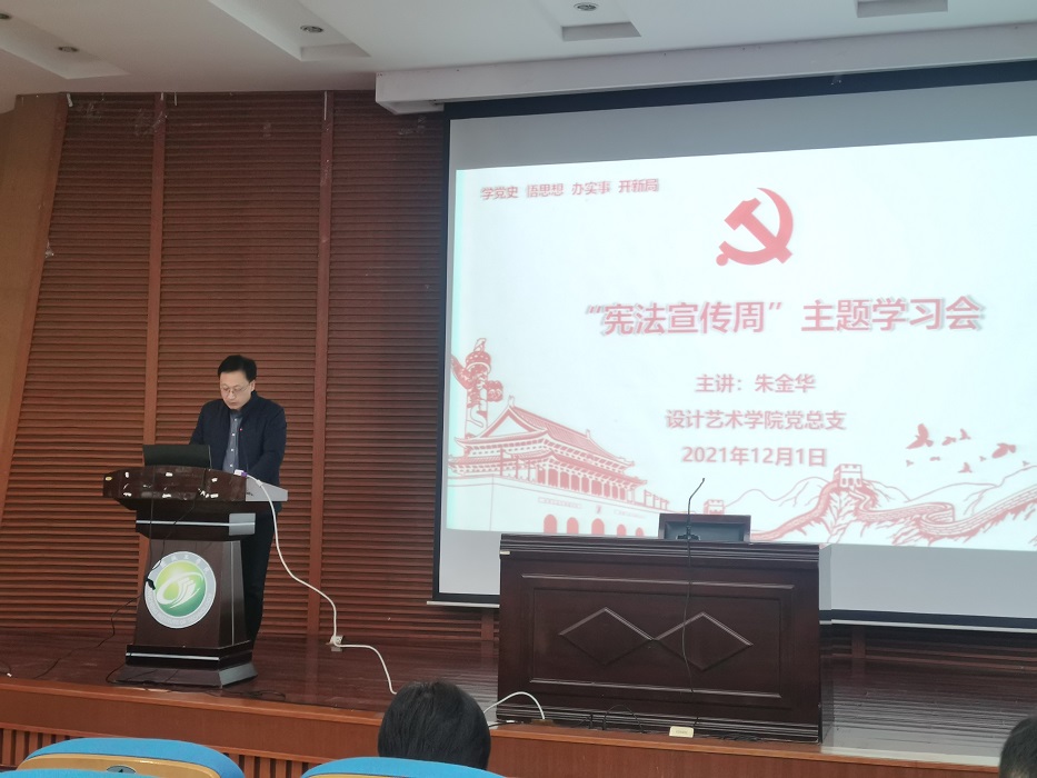 12月1日下午,在南校区润美楼报告厅,设计艺术学院组织召开“宪法宣传周”专题学习会,党总支书记胡凌霞主持学习会,教工党支部纪检委员朱金华领学,全体教职工参加学习。