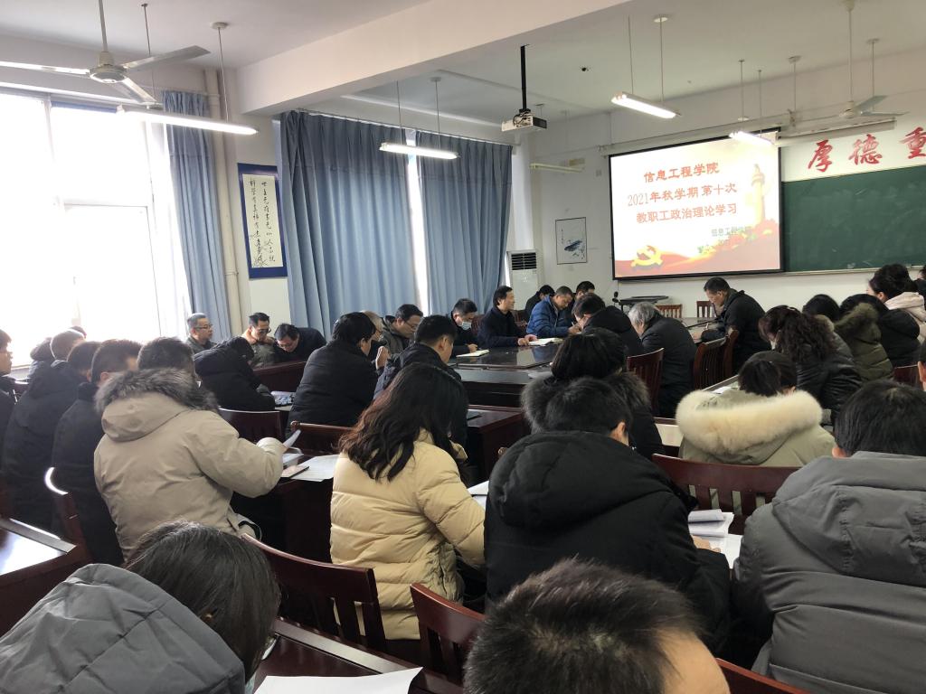 12月29日下午,在南校区怀德楼B410会议室,信息学院组织开展2021年秋学期第十次教职工政治理论学习,集中观看学习专题视频《澳客彩票网_中国足球彩票-app官方下载若干历史问题的决议》和《澳客彩票网_中国足球彩票-app官方下载建国以来党的若干历史问题的决议》。学院党委书记王爱军主持,70余名教职工参加。