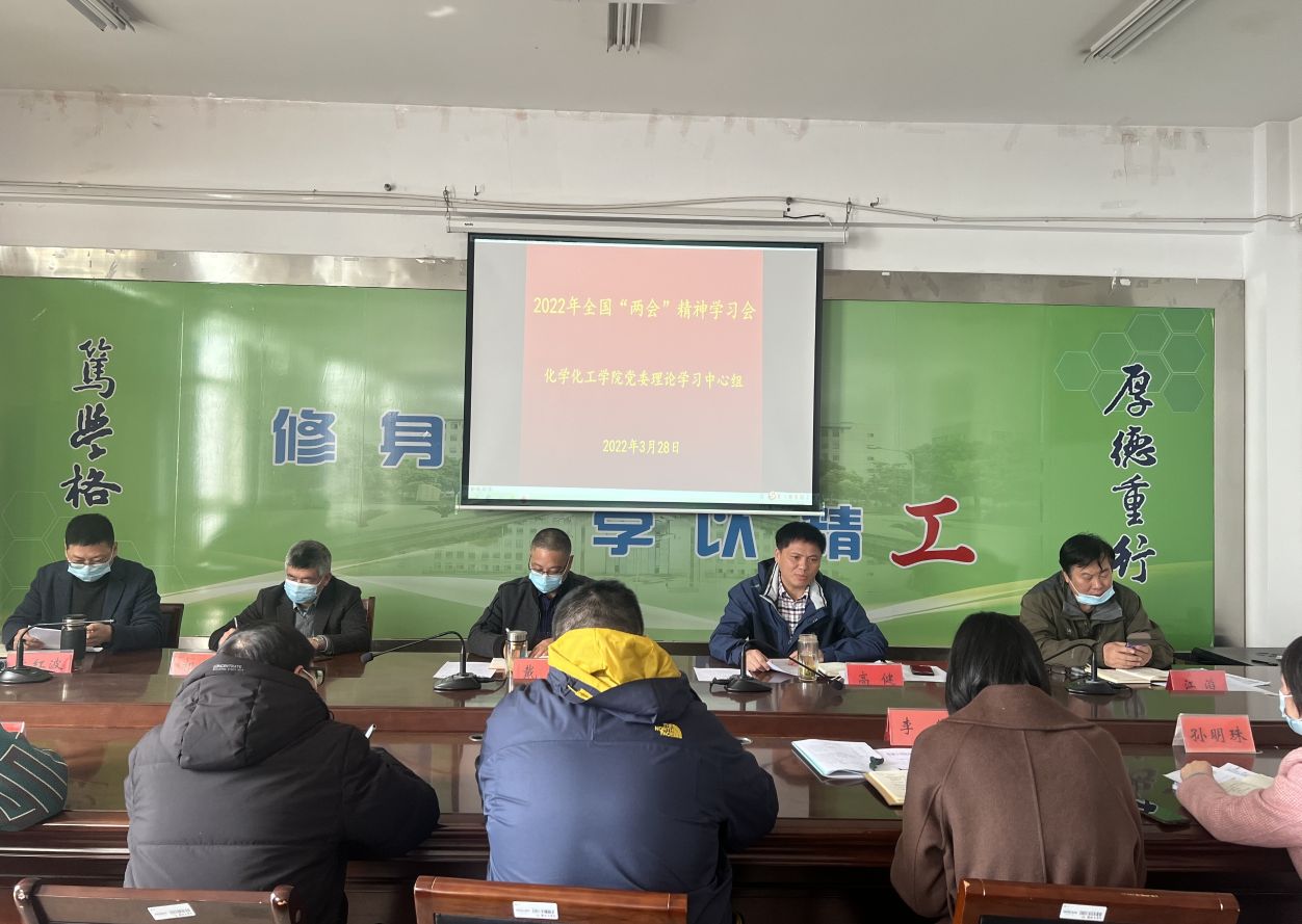 3月28日上午,化学化工学院党委理论学习中心组在希望大道校区学院201会议室召开2022年全国“两会”精神专题学习会。院党委书记高健主持会议,理论中心组全体成员参加学习。