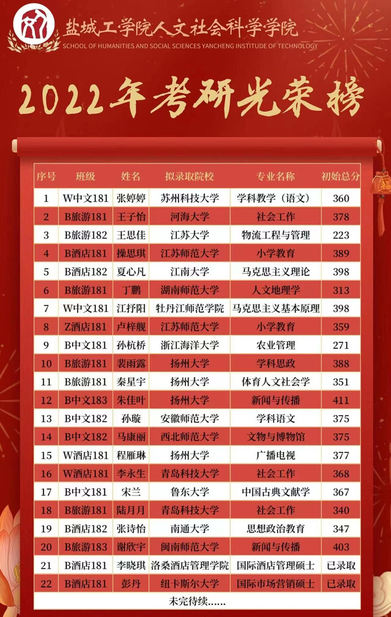 目前,人文学院已有63人落实就业单位,22人成功考取国内外硕士研究生,2人考取为江苏省“名校优生”选调生,均超越同期水平。