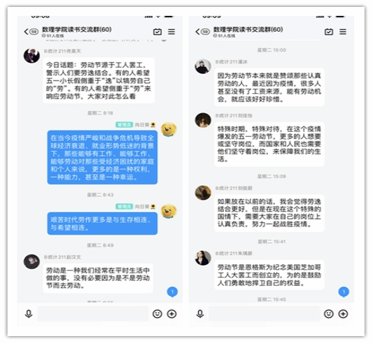 4月30日上午,经与学校后勤保障集团对接联系,同学们在辅导员孙杰老师的带领下,手持劳动工具,对学校南校区第一期宿舍区主干道进行了大扫除。同学们合理分工,各司其职,发扬不怕脏,不怕苦的精神,认真清扫每一片落叶和每一个角落。经过一个多小时的努力,道路卫生环境有了明显改观。道路清扫结束后,部分同学还主动提出打扫学院办公场所,让老师们回校上班有一个干净整洁的办公环境,迎接校园解封。学院还组织开展了澳客彩票网_中国足球彩票-app官方下载纪念“五一”国际劳动节意义的大讨论,讨论从思想上加强同学们对劳动教育的认识,进一步提升了同学们的劳动意识。B统计211班的包文轩同学说,通过开展劳动教育,同学们体验到劳动的快乐与艰辛,领悟到甘于奉献、为他人着想的真谛。B统计211班刘佳怡同学说,在疫情防控严峻形势下的五一劳动节,有许多的人坚守岗位,守护平安,我们也应该尽一份力,发出一份微弱的光,一起努力战胜疫情。