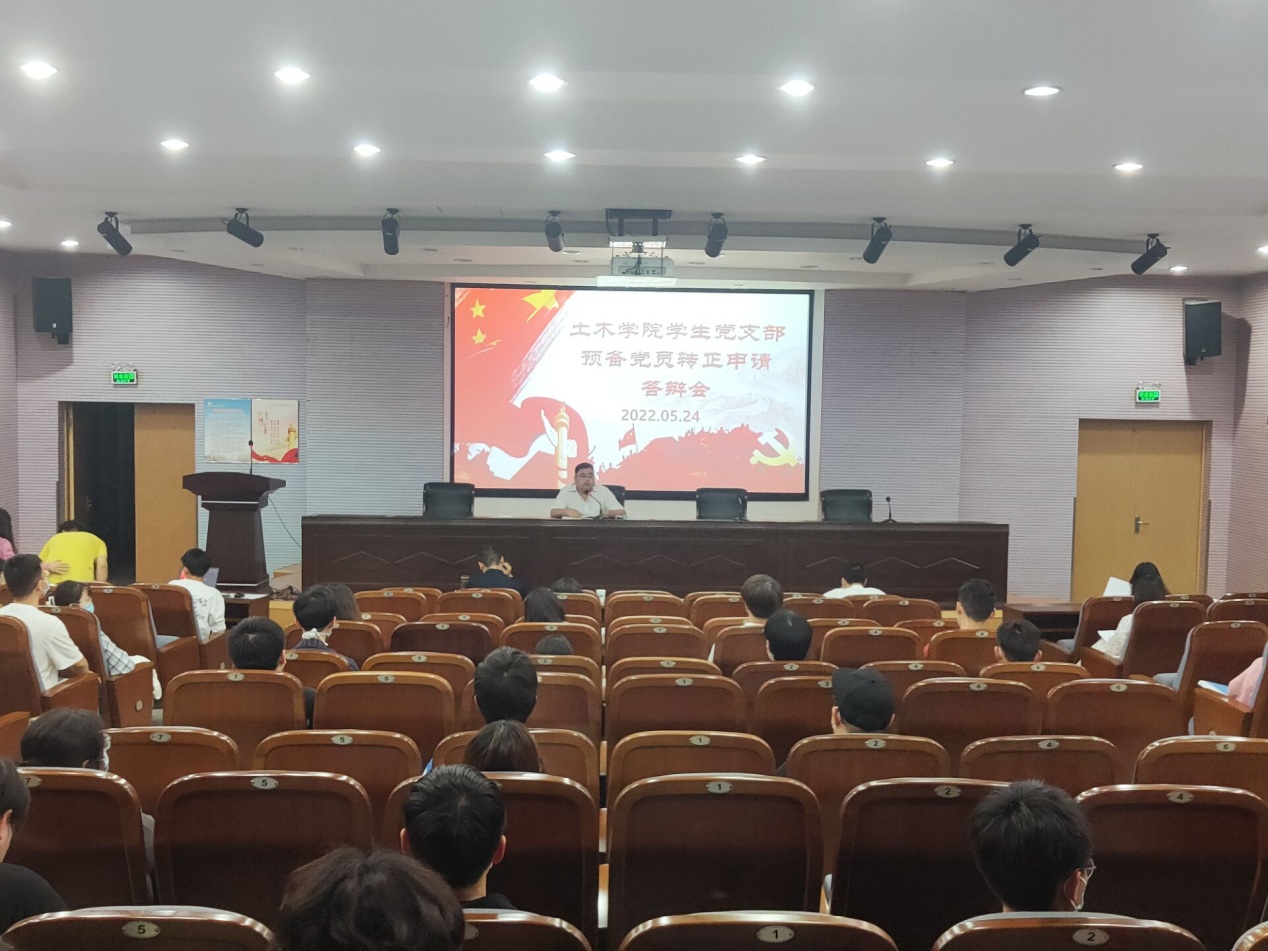 5月24日晚18:30,土木工程学院在希望大道校区土木馆报告厅召开预备党员转正答辩会。学院党委书记谷伟,副书记陈广正,学生党支部书记、支部委员及支部教师党员出席本次答辩会并担任答辩评委,55名预备党员参加答辩。