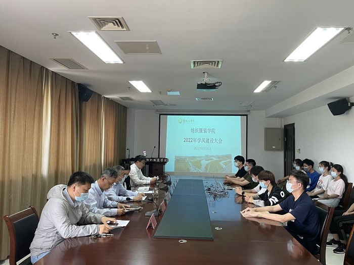 5月25日下午2:00,纺织服装学院在学院三楼会议室通过线上腾讯会议形式召开2022年学风建设大会。学院党总支书记宋孝浜、院长王春霞,副院长周天池、马志鹏,全体专兼职辅导员、受表彰学生、各年级500余名学生参加会议。大会由学院党总支副书记杨军主持。