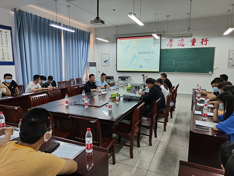 5月30日晚,信息学院在南校区怀德楼B410会议室召开2022届毕业生就业推介会,学院党委书记王爱军,学工办负责人、毕业班辅导员和8家企业人事部门经理出席活动,30余名毕业生代表线下参加会议,200余名毕业生线上参加交流。推介会由信息学院学工办副主任陈华蓉主持。