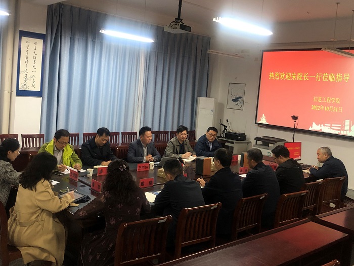10月31日,盐城师范学院信息工程学院院长朱立才,副院长周彩根一行五人来澳客彩票网_中国足球彩票-app官方下载信息工程学院就学科建设、人才引进、人工智能实验室建设等方面进行调研。信息工程学院党委书记王爱军,院长王如刚携学院领导班子成员,学院实验中心、人工智能系、教科研办主任热烈欢迎。