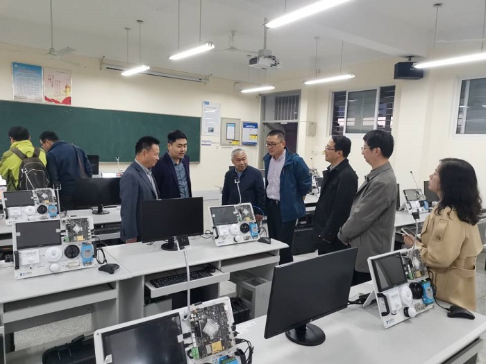朱立才就人才引进、学科建设以及人工智能实验室建设等方面与信息学院进行了深入交流。会后,盐城师范学院信息工程学院一行参观了学院人工智能实验室。