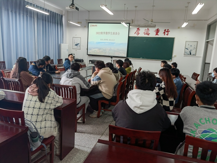 为进一步深入一线联系学生,关心了解学生的思想动态和学习生活状况,收集学生对院校教育、管理、服务等方面的意见和建议,信息工程学院于11月9日下午在南、北校区分别召开学生座谈会。会议由学院院长助理周锋主持,教科研办卞金洪、王媛媛,学院各专业班级学生代表共计50余人参加。