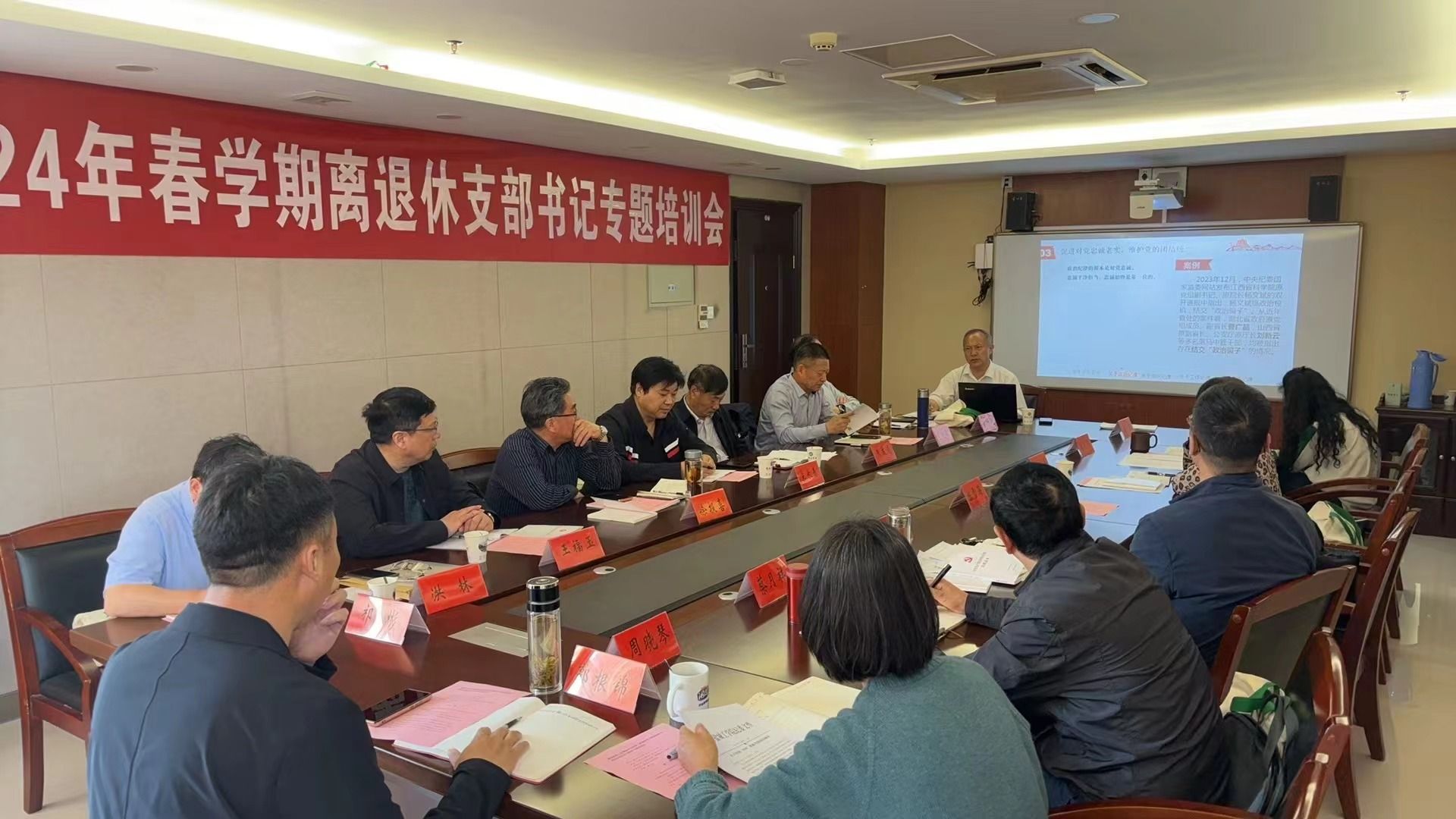为扎实推进党纪学习教育,开展好“510”思廉月活动,5月16日下午,在南校区行政办公楼428会议室,离退休党工委召开理论学习中心组第三次集中学习暨离退休支部书记党纪学习教育专题培训会。原校党委常委、副校长,离退休厅级干部党支部书记宋长春出席。离退休党工委中心组成员、全体离退休支部书记、离退处在职党员参加。会议由离退休党工委书记潘文东主持。