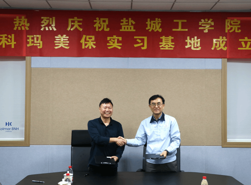 在江苏科玛美保科技有限公司,董事长姜俊瑛(韩国)、经营支援部总经理姜奇远(韩国)、人事总务组总监陈洁、人事总务组经理陈扬等热情接待。通过参观生产车间、座谈,院企双方围绕人才培养、用人需求等方面进行了探讨和交流,为毕业生拓展了生物工程、食品科学等岗位的实习及就业机会。彭斌介绍了学院的发展情况、专业特色以及学校未来的发展方向,表示下一步学院将紧紧围绕行业和企业需求,推动院企深度合作,实现院企双方优势互补,建立合作共赢机制。会后,双方签订了实习基地协议书。