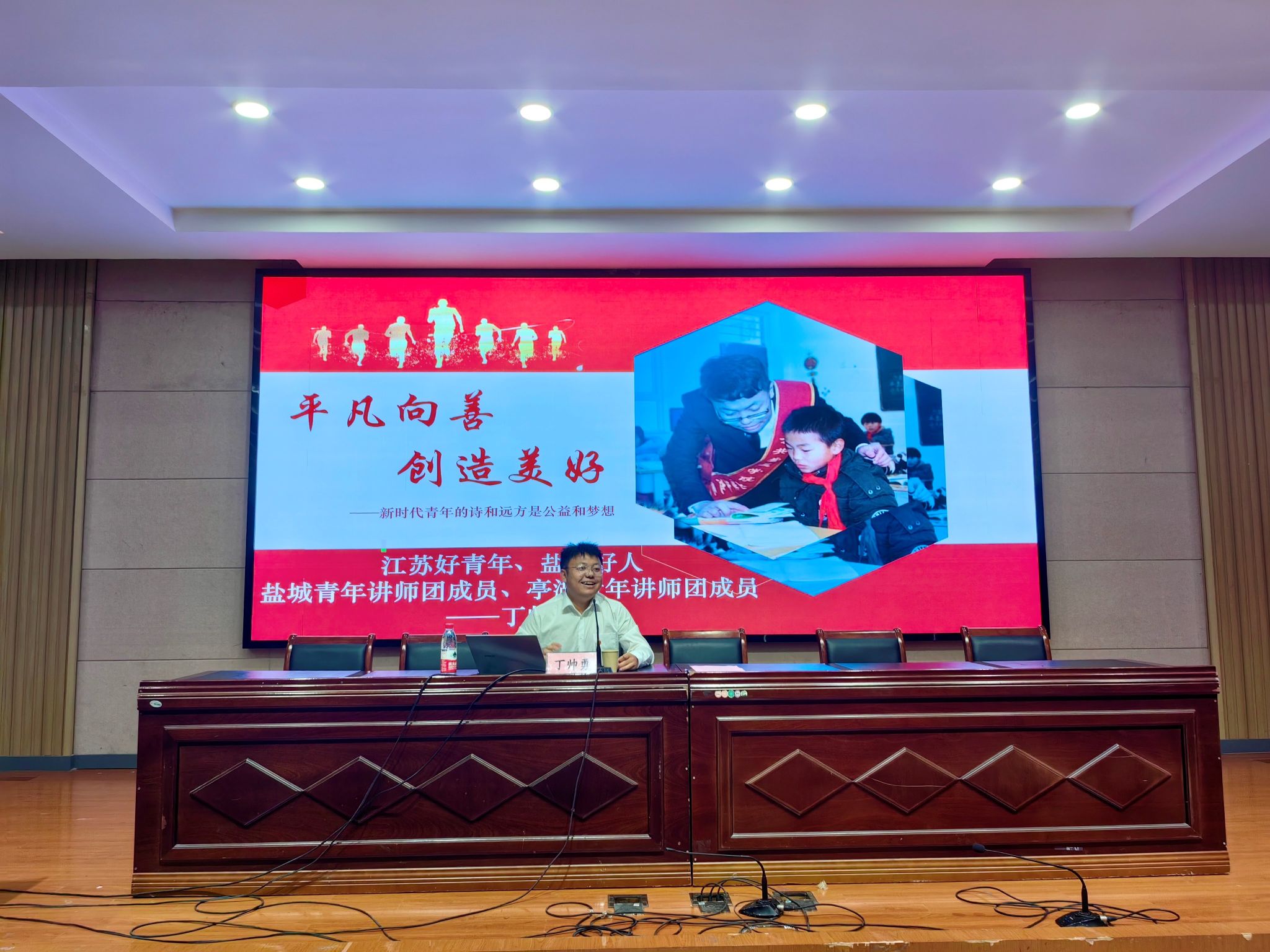 活动最后,丁帅勇为全体学生作题为“平凡向善,创造美好——新时代青年的诗和远方是公益和梦想”的报告。报告中,他详细讲述了自己的志愿服务工作历程,并结合实际案例分享了在参与志愿服务过程中的感悟和收获。他表示,青年参与志愿服务活动不仅是激发社会活力、创新社会治理、促进社会和谐的重要力量,也是培育青年自觉践行社会主义核心价值观、传递社会关爱、促进社会文明的有效途径。他希望广大青年大学生积极行动起来,在助老助残、关爱青少年、基层社会治理等领域持续贡献青春力量。