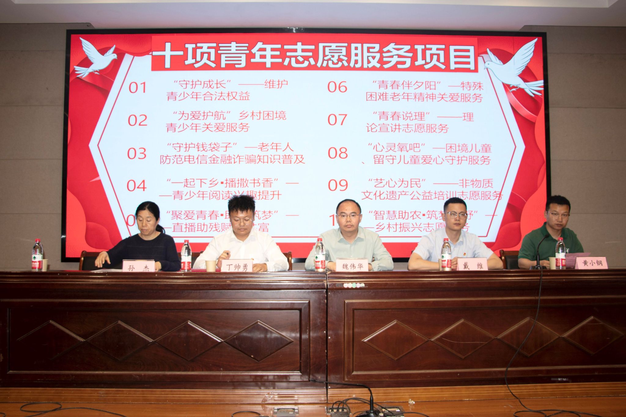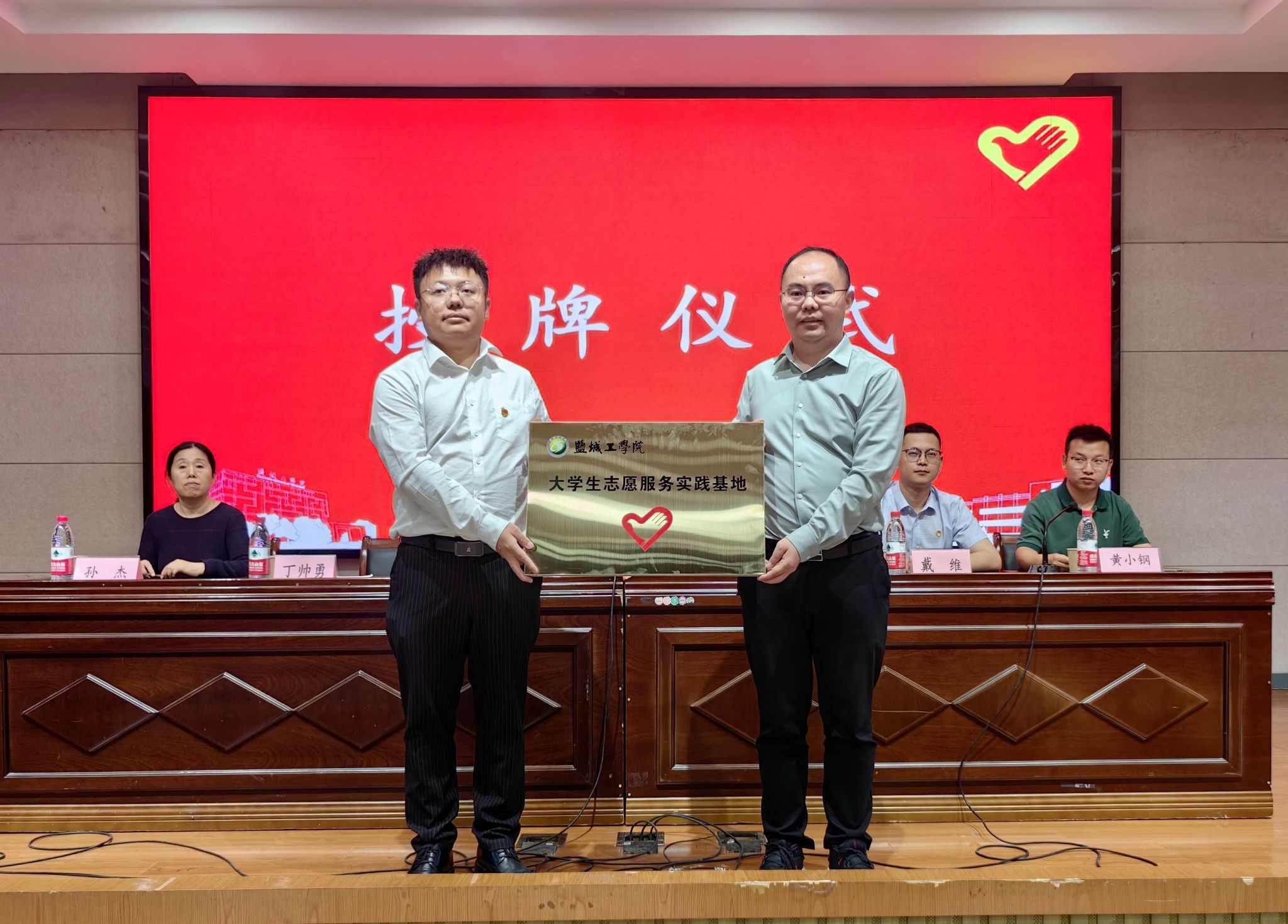 魏伟华向盐城市心途公益服务中心授牌,并为丁帅勇、戴维颁发“志愿服务校外辅导员”聘书。孙杰与丁帅勇共同签订志愿服务项目合作协议并联合发布10项青年志愿服务项目。数理学院B统计222陈丽雯作为大学生志愿者代表进行发言。