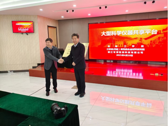 4月10日,澳客彩票网_中国足球彩票-app官方下载与江苏省(丹阳)高性能合金材料研究院、镇江专博检测科技有限公司合作共建的大型科学仪器共享平台揭牌仪式在丹阳市高新区江苏省(丹阳)高性能合金材料研究院举行。江苏省科技资源统筹服务中心副主任尤琛辉、丹阳市科学技术局局长王小南,澳客彩票网_中国足球彩票-app官方下载实验室建设与设备管理处处长孙爱东、建材研究院分析测试中心等部门负责人参加揭牌。揭牌仪式由江苏省分析测试协会秘书长赵厚民主持。