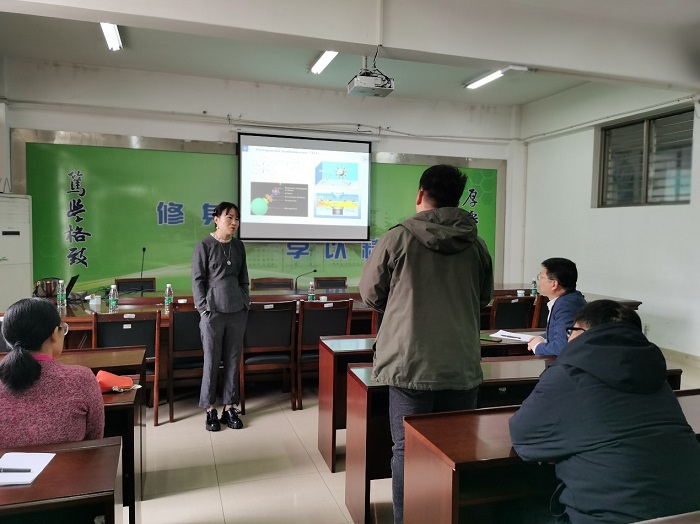 单丹教授概述了根据分子间作用力调控、借助表面活性剂分子,设计合成可用于电致化学发光(Electrochemiluminescence, ECL)的卟啉基光电活性材料,并根据所得材料的光、电化学特性,设计增强型ECL生物传感并应于生物分子的检测。期间,单丹教授与参会师生探讨了如何进一步设计开发性能优秀、价格低廉的光电化学活性纳米材料并用于生物传感,讨论了如何运用组装的卟啉基光电活性材料反向设计生物传感器。这次学术报告会的召开,有利于化工学院的师生对卟啉基材料在电致化学发光生物传感的研究认识,加强学术交流,营造良好的学术氛围。