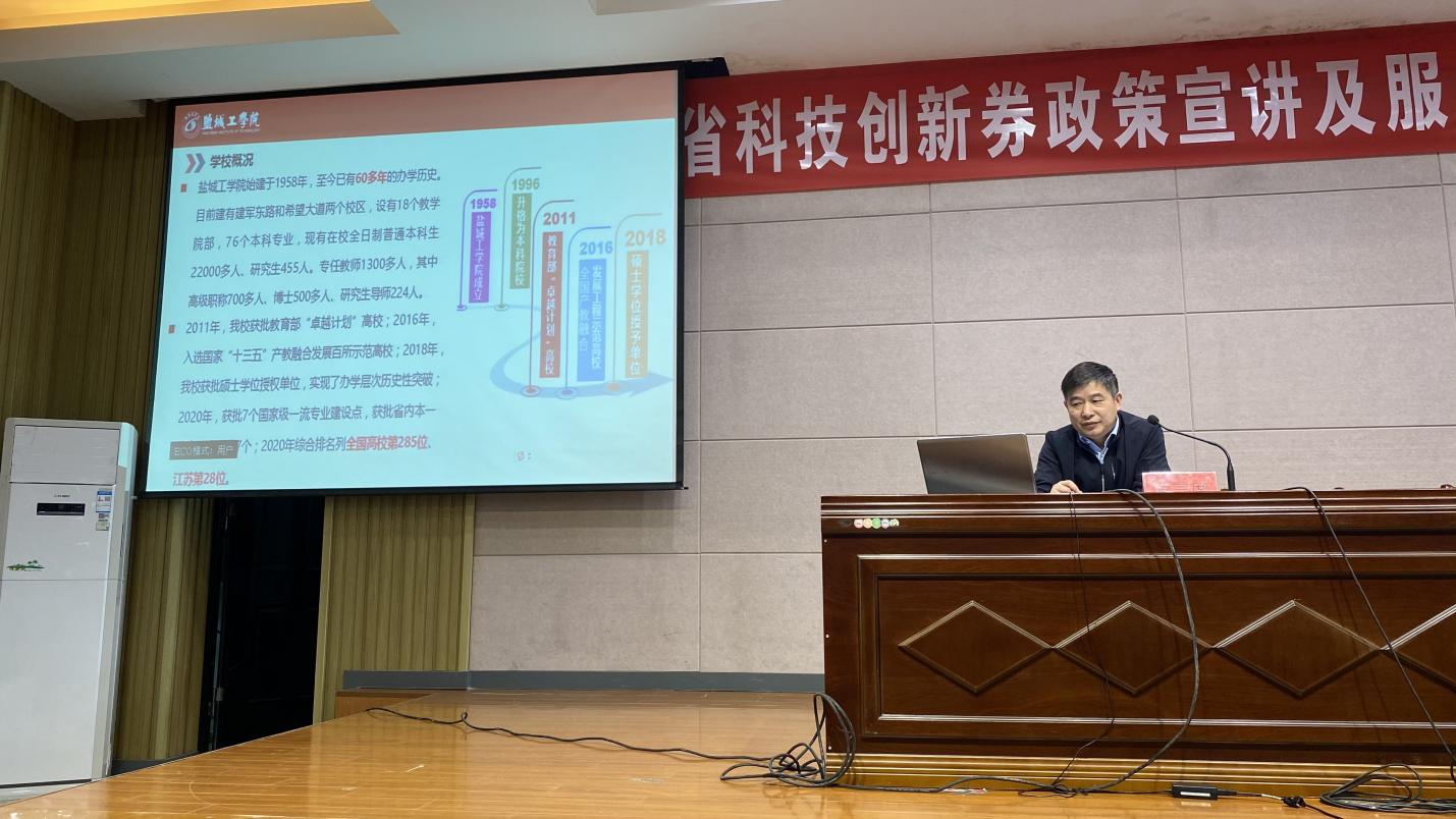 5月21日下午,江苏省科技创新券政策宣讲及服务机构推介会在澳客彩票网_中国足球彩票-app官方下载希望大道校区机械馆报告厅召开。江苏省科技资源统筹服务中心资源管理部段伦超副主任(主持工作),澳客彩票网_中国足球彩票-app官方下载实验室建设与设备管理处处长孙爱东,盐城市各县(市)区科技局分管局长、业务科室负责人、盐城市研发制造类科技型企业负责人等300余人参加会议。盐城市科技局科研成果处处长胡国兵主持会议。