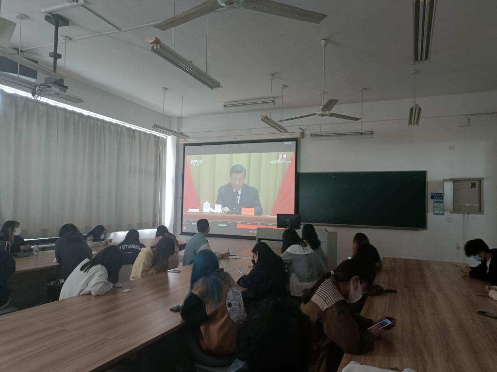 5月10日上午,设计艺术学院组织各班团支书,2021-2022年度校百佳青年、魅力团支书、活力团支部代表,学生会主要学生干部在润美楼B209、B301集中观看庆祝中国共青团成立100周年大会,各团支部组织团员线上集中观看。