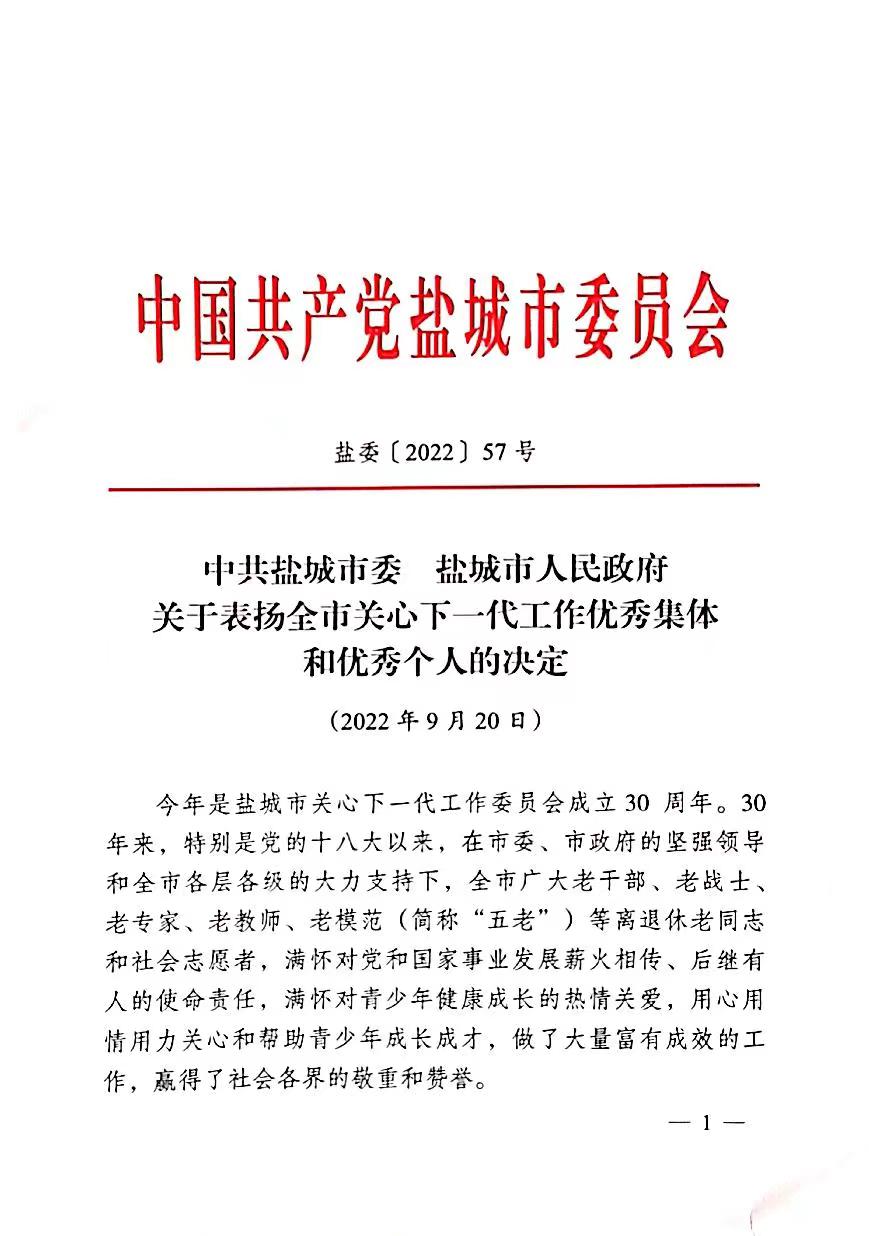 在9月22日召开的纪念盐城市关工委成立30周年纪念会上,澳客彩票网_中国足球彩票-app官方下载关工委荣获市“关心下一代工作优秀集体”荣誉称号,周瑞明同志荣获市“关心下一代工作优秀个人”荣誉称号。